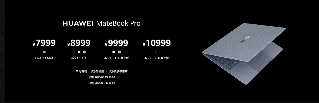鴻蒙筆記本電腦HUAWEI MateBook Pro則搭配了晴藍(lán)、硯黑、宣白三款優(yōu)雅配色,并提供標(biāo)準(zhǔn)版與柔光版可選。售價方面,HUAWEI MateBook Pro 7999元起,其中,24GB+512GB標(biāo)準(zhǔn)版售價7999元、32GB+1TB標(biāo)準(zhǔn)版售價8999元, 32GB+1TB柔光版售價9999元, 32GB+2TB柔光版售價10999元。5月19日18:08開啟預(yù)售,6月6日10:08在華為商城,華為體驗店/華為授權(quán)零售商開售。